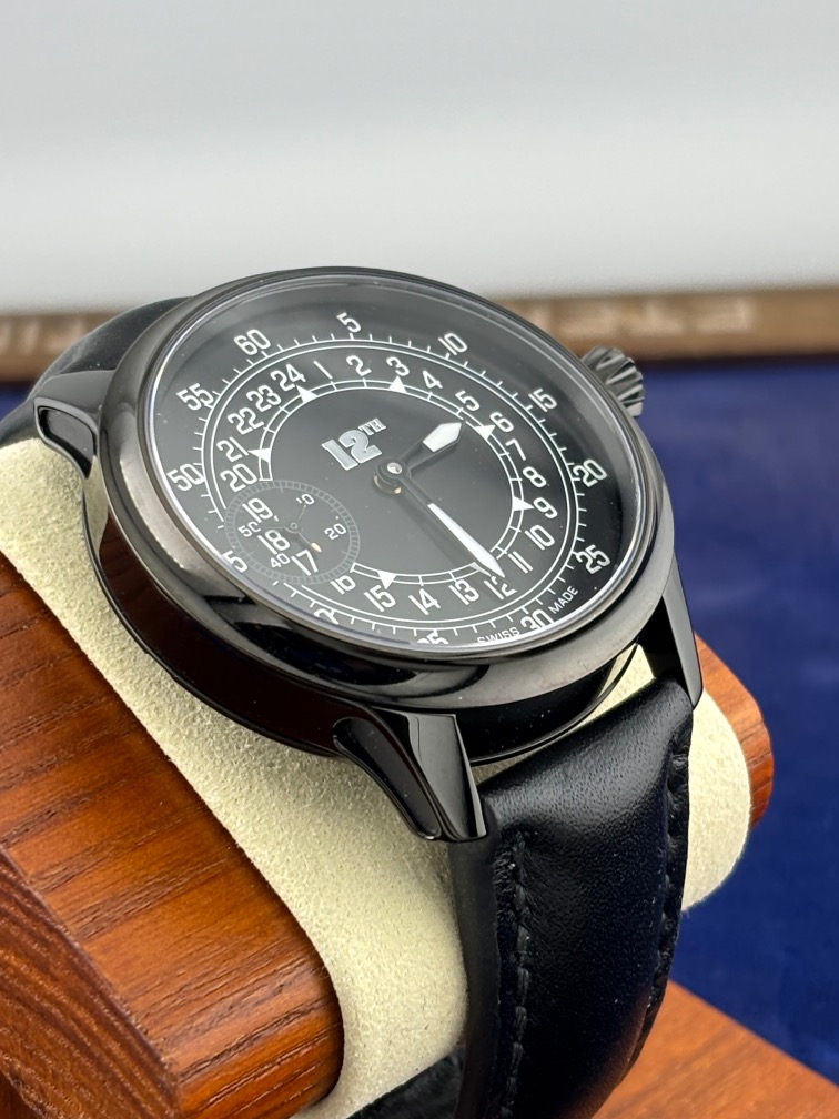 Introducing the Colonel Cathcart, the perfect watch for the aviator that wants all to know that there are 24 hours in a day. The watch is a Swiss made modified ETA 6497-1 that utilizes a fully lumed dial with 24 hour calibration and a propellor inspired small sub seconds dial at 1800 hours.
